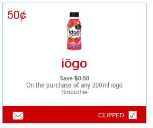 Save $0.50 on the purchase of any 200ml iögo Smoothie with this printable SmartSource coupon.