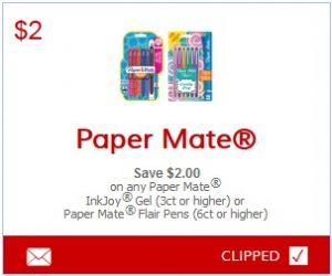 Save $2.00 on any Paper Mate® InkJoy® Gel (3ct or higher) or Paper Mate® Flair Pens (6ct or higher)